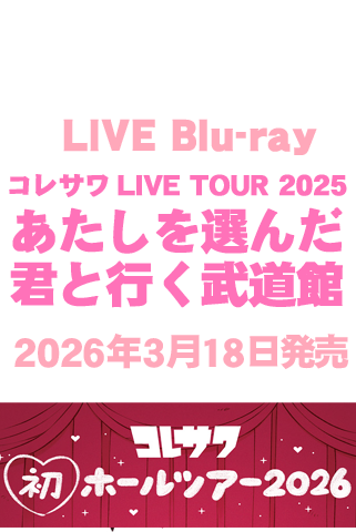 ディスコグラフィ ライブBlu-ray『コレサワ LIVE TOUR 2025 あたしを選んだ君と行く武道館』3/18発売決定!